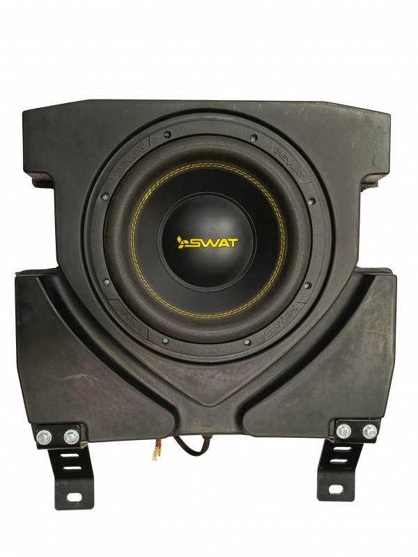 - Сабвуфер 10 дюймовый и один усилитель пиковой мощностью 2100 W.